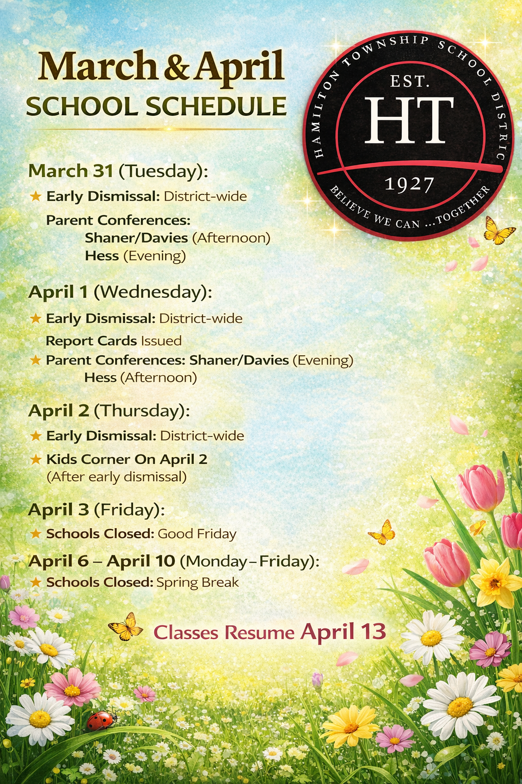 The Hamilton Township School District is dedicated to creating a safe, secure, and welcoming educational environment for all. We will inspire our diverse community to realize their optimal potential as lifelong learners and responsible members of our community.